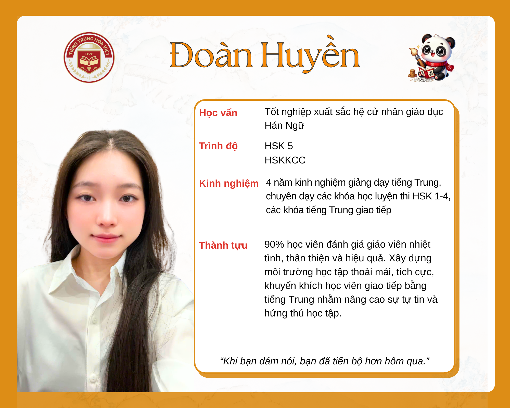 "Cam kết mang đến môi trường học tiếng Trung chất lượng, hiệu quả và bền vững là kim chỉ nam của Hoa Việt." – Phí Huyền Trang, CEO & Founder